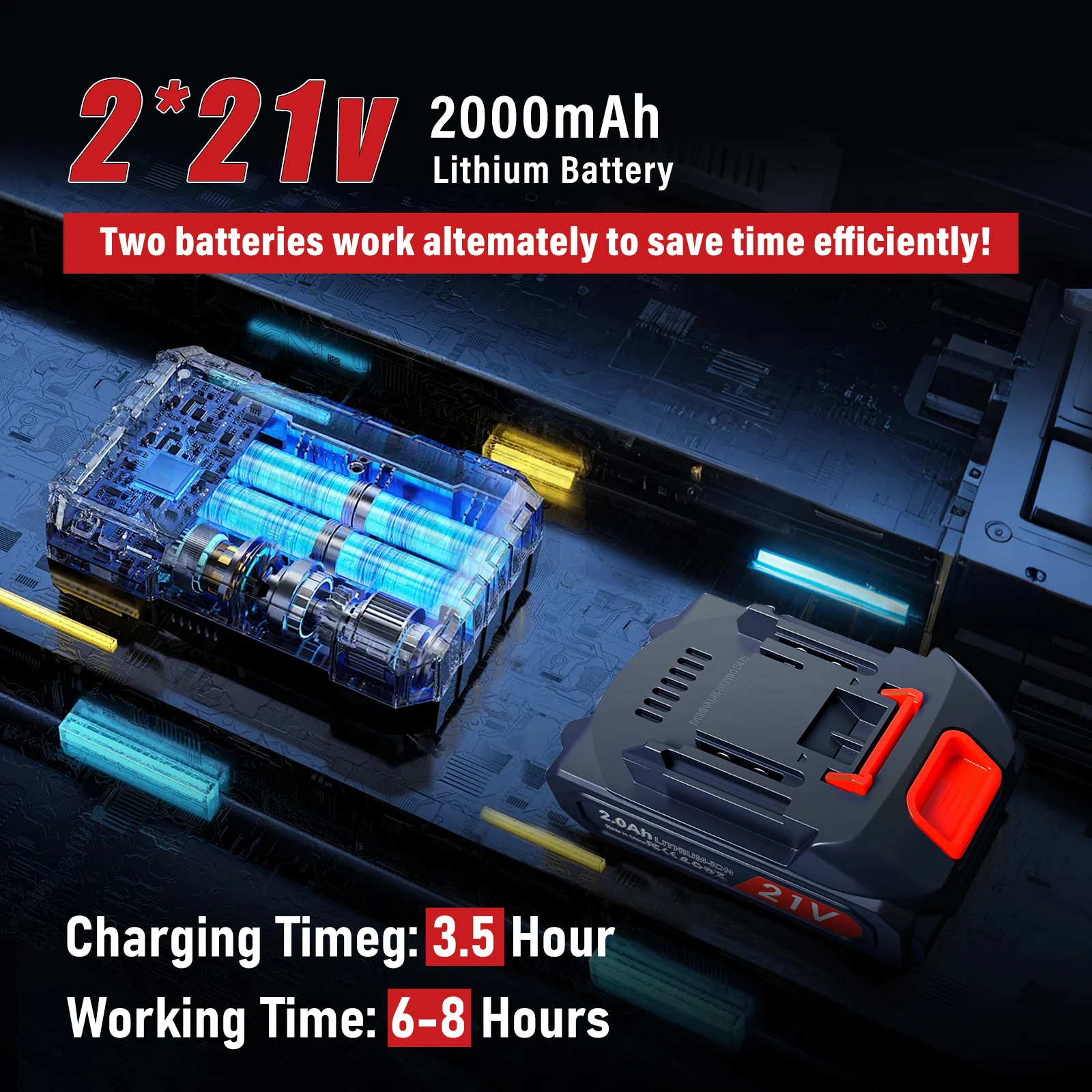 Les 2 batteries lithium de 2 000 mAh offrent jusqu’à 6 à 8 heures d’autonomie et permettent de réaliser plus de 10 000 coupes par charge. Le temps de charge rapide de 3,5 heures assure un retour rapide au travail.