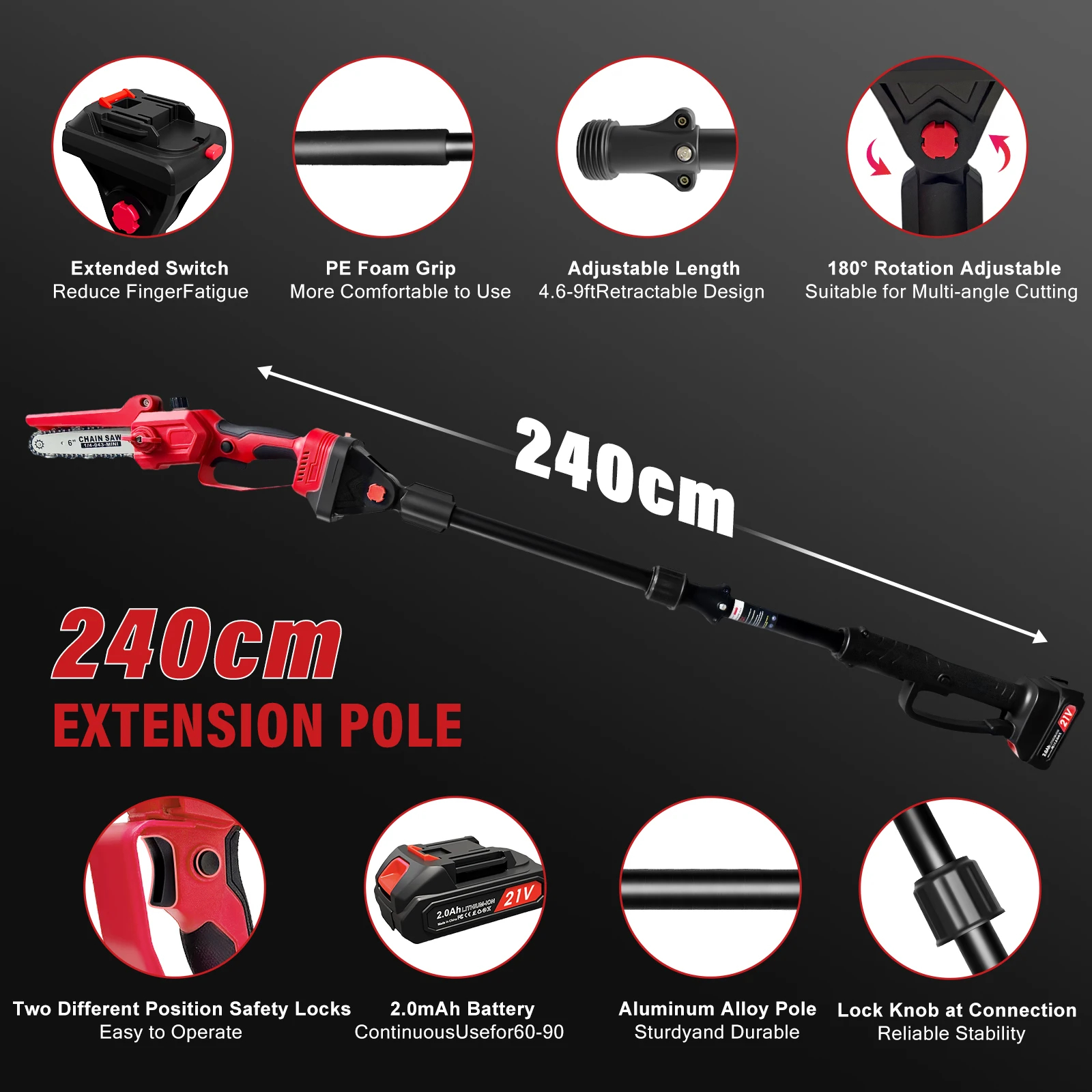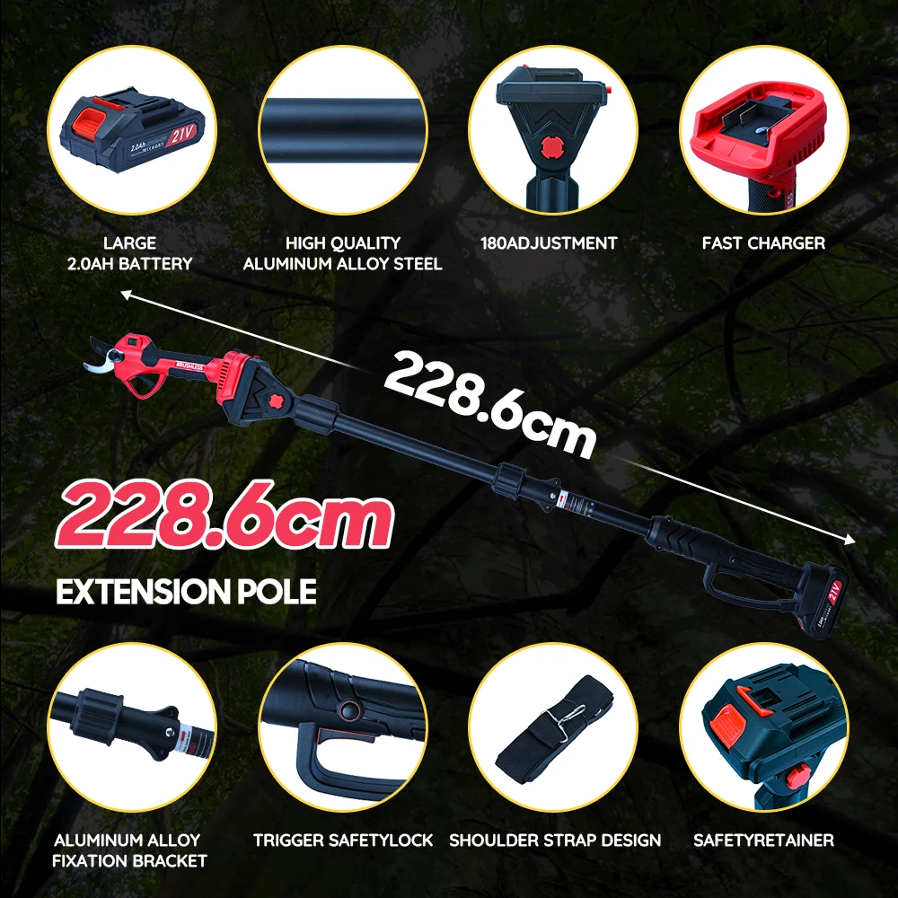 ✂️ Sécateur rechargeable avec perche télescopique – Coupe puissante et précise