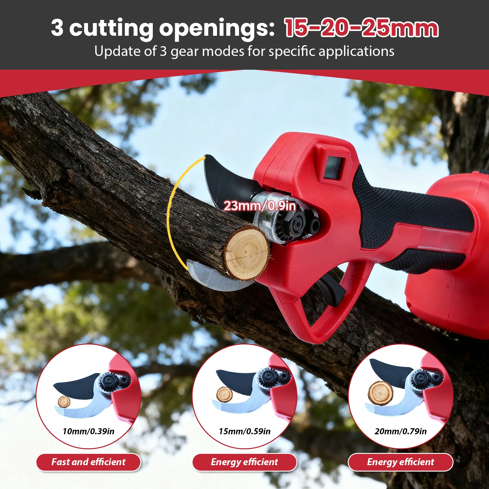 Profitez de 3 ouvertures de coupe réglables (15 / 20 / 25 mm) pour s’adapter à toutes les épaisseurs de branches. Son moteur sans balais en cuivre pur de 300 W garantit une puissance constante, une grande durabilité et une efficacité maximale.